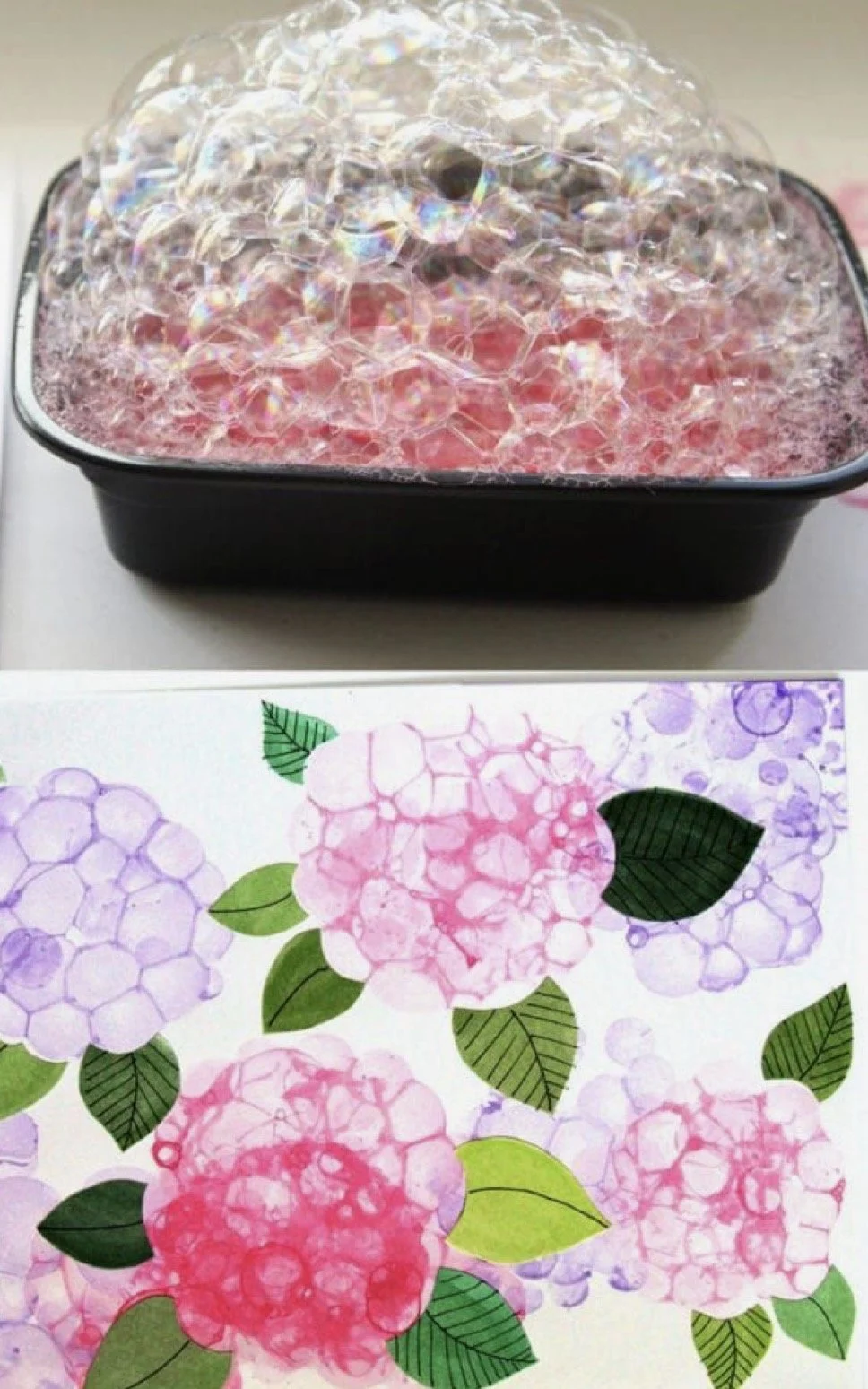 During this class students will have access to a variety of different colors to create bubble paintings. Students will learn how to create the paint bubbles and then how to turn those bubbles into flowers, turtles, or even their own creations.