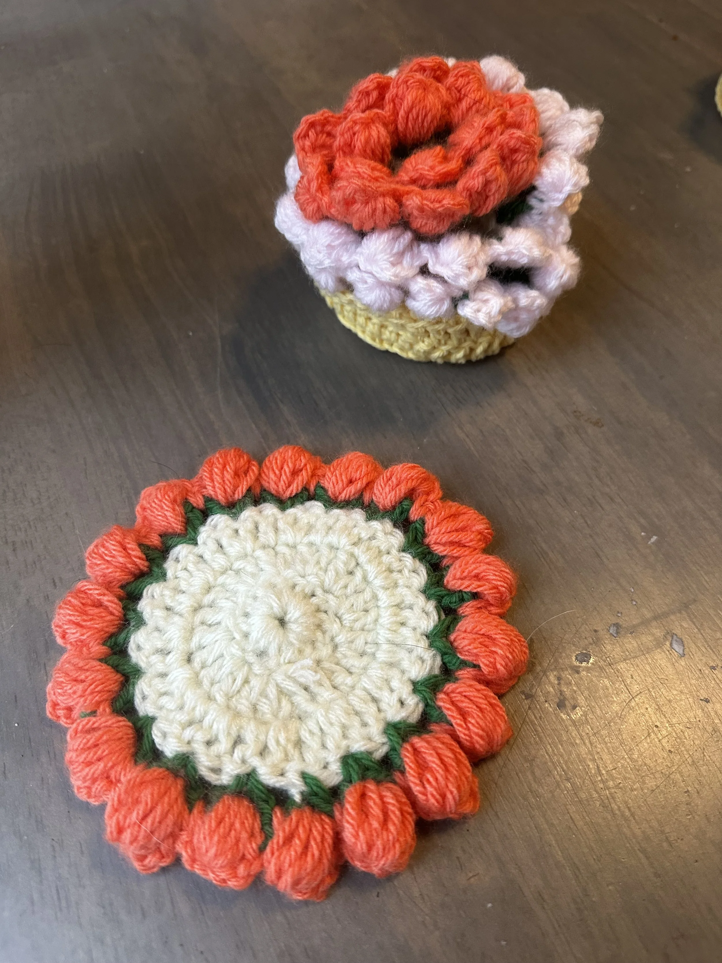 Crochet coasters with Grace