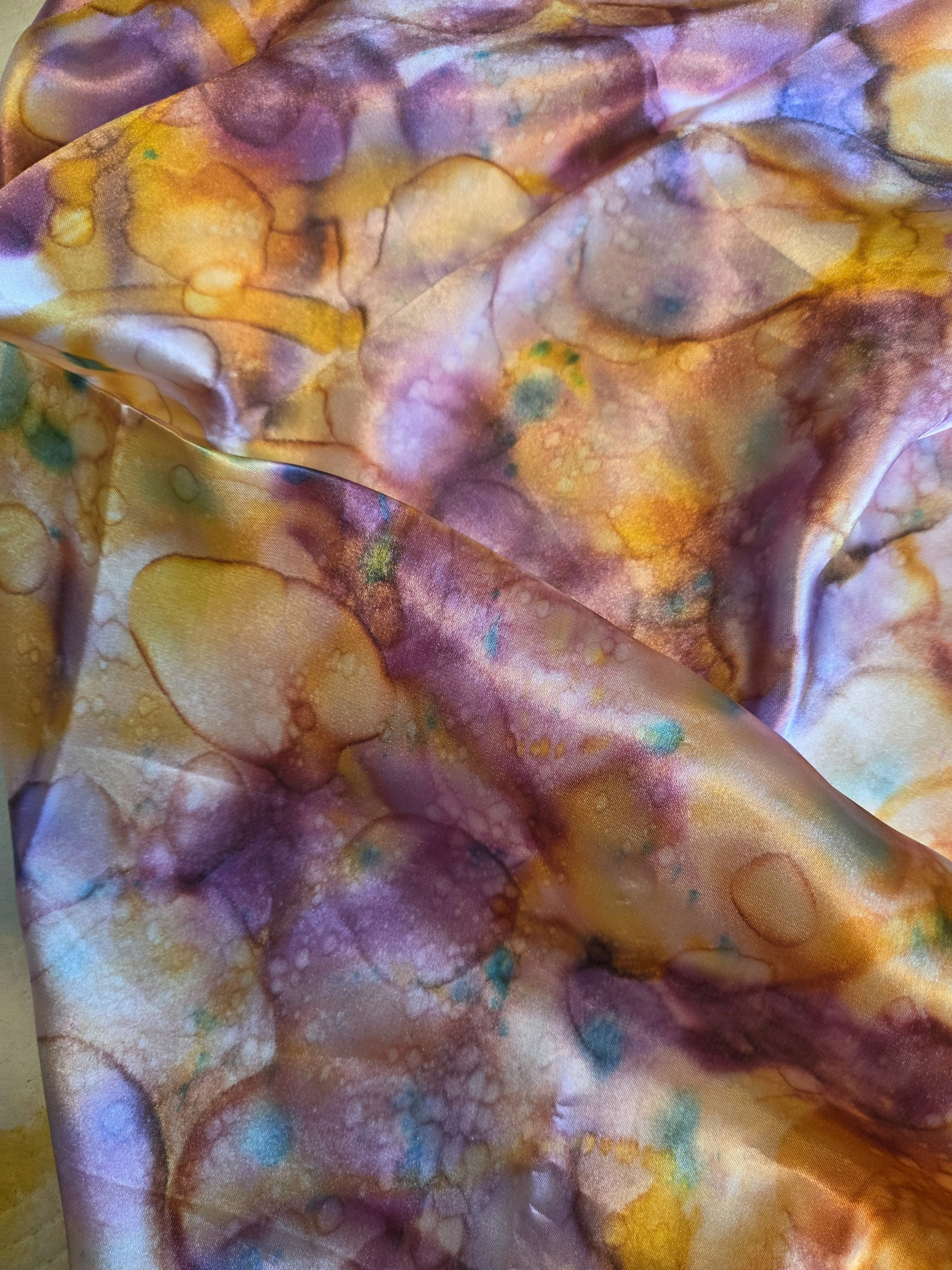 Alcohol ink is a fun and innovative way to create with your imagination. You will learn different techniques to design and create a lovely 24” square silky scarf. Scarves may be used for head, neck, ponytail, purse, or wherever else you see fit for your wearable art. The colors are vibrant and full of energy waiting to be sent into motion by your hand.