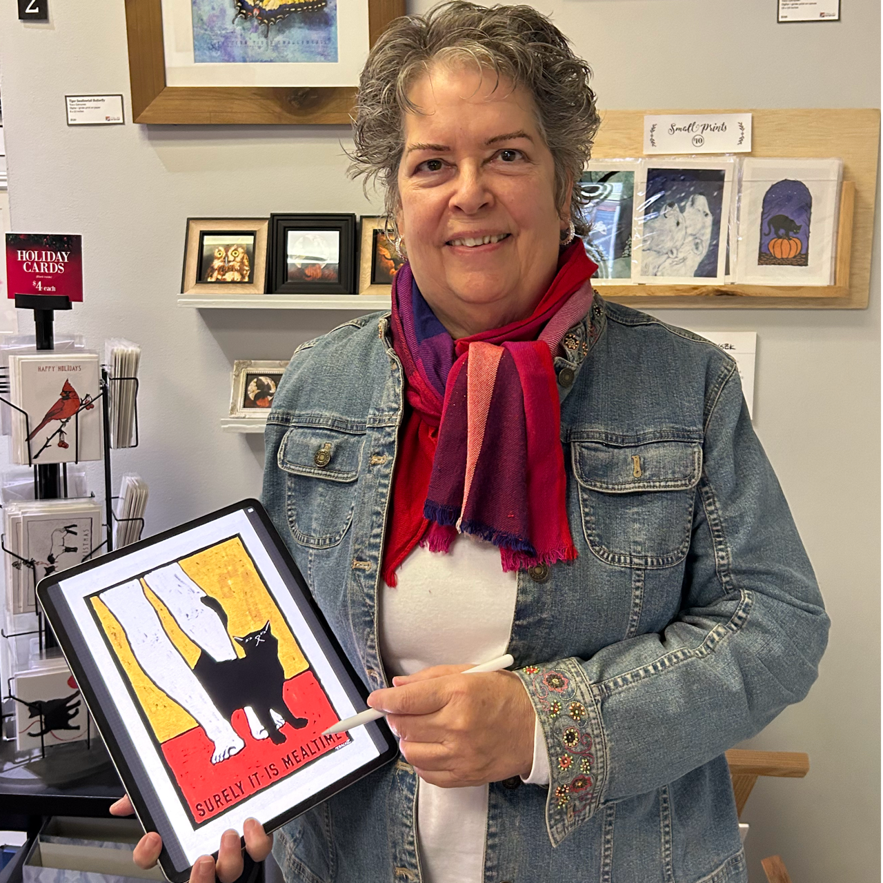 NEW for online shopping! A curated selection of 15 unique prints of my popular "winged cats" and Halloween designs. Some capture the spooky spirit of the season, others simply celebrate the charming whimsy of magical felines. These prints and more, as well as greeting cards, are also available for in-person shopping in my exhibit space at Stella's Art Gallery.